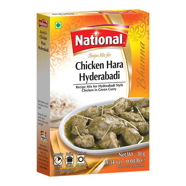 National Chicken Hara Hyderabadi Recipe Mix is specially made by a panel of experts, using aromatic spices and the finest ingredients in exactly the right measure. It will enable you to cook delicious chicken in green curry with ease that you and your loved ones can relish each day.