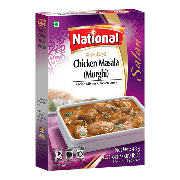 National Chicken Masala (Murghi) Recipe Mix is specially made by a panel of experts, using aromatic spices and the finest ingredients in exactly the right measure. It will enable you to cook delicious chicken curry with ease that you and your loved ones can relish each day.